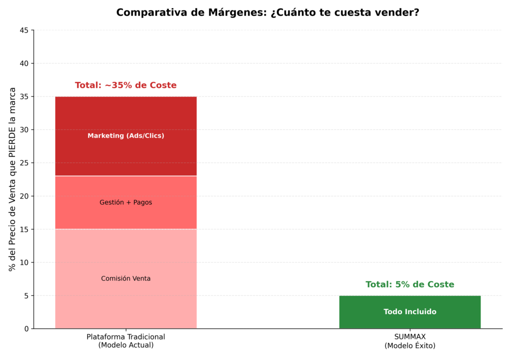 - Pagas entre un 15% y un 35% sumando comisiones, publicidad, TPV, gestión, algoritmos y exposición.