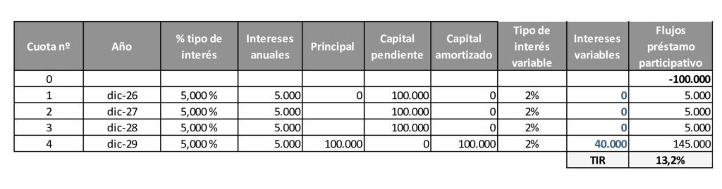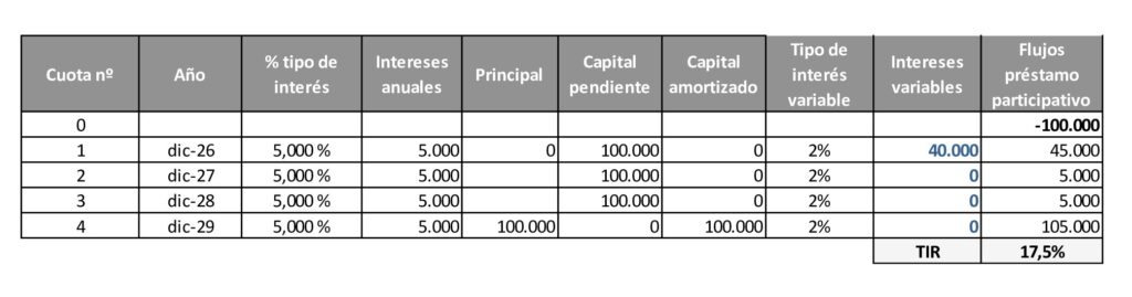 - Tope acumulado del interés variable para todos los préstamos participativos: 40% del principal.