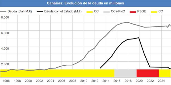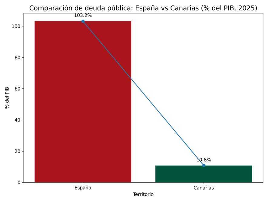 Canarias es una de las comunidades con menor deuda en relación a su PIB, y por debajo del umbral legal de deuda autonómica, lo que refuerza la percepción de gestión fiscal prudente relativa dentro del conjunto español.
