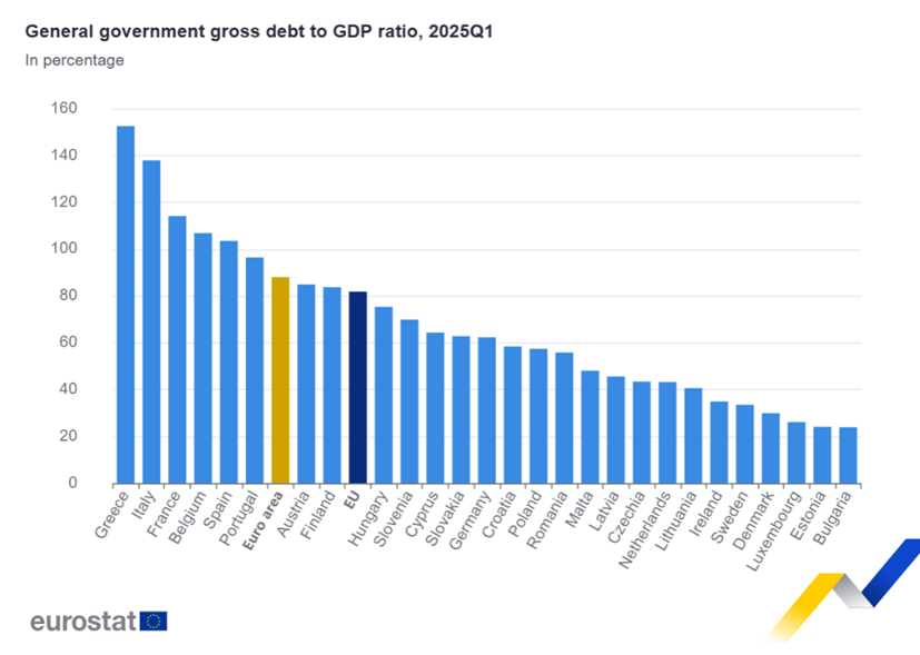 Aunque España sigue por encima de la media de la eurozona (aprox. 87 % PIB), su deuda está por debajo de países como Francia, Italia y Grecia, lo que indica una relativa mejora fiscal dentro del contexto europeo: