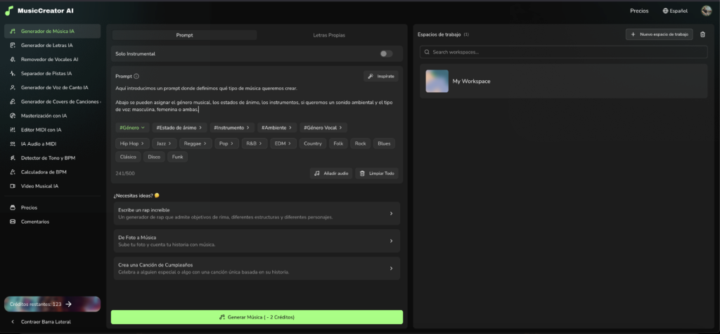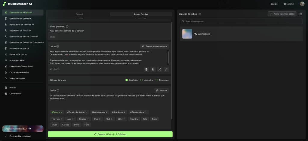 Con letra y estilo definidos, la producción pasó a MUSICCREATOR.AI.